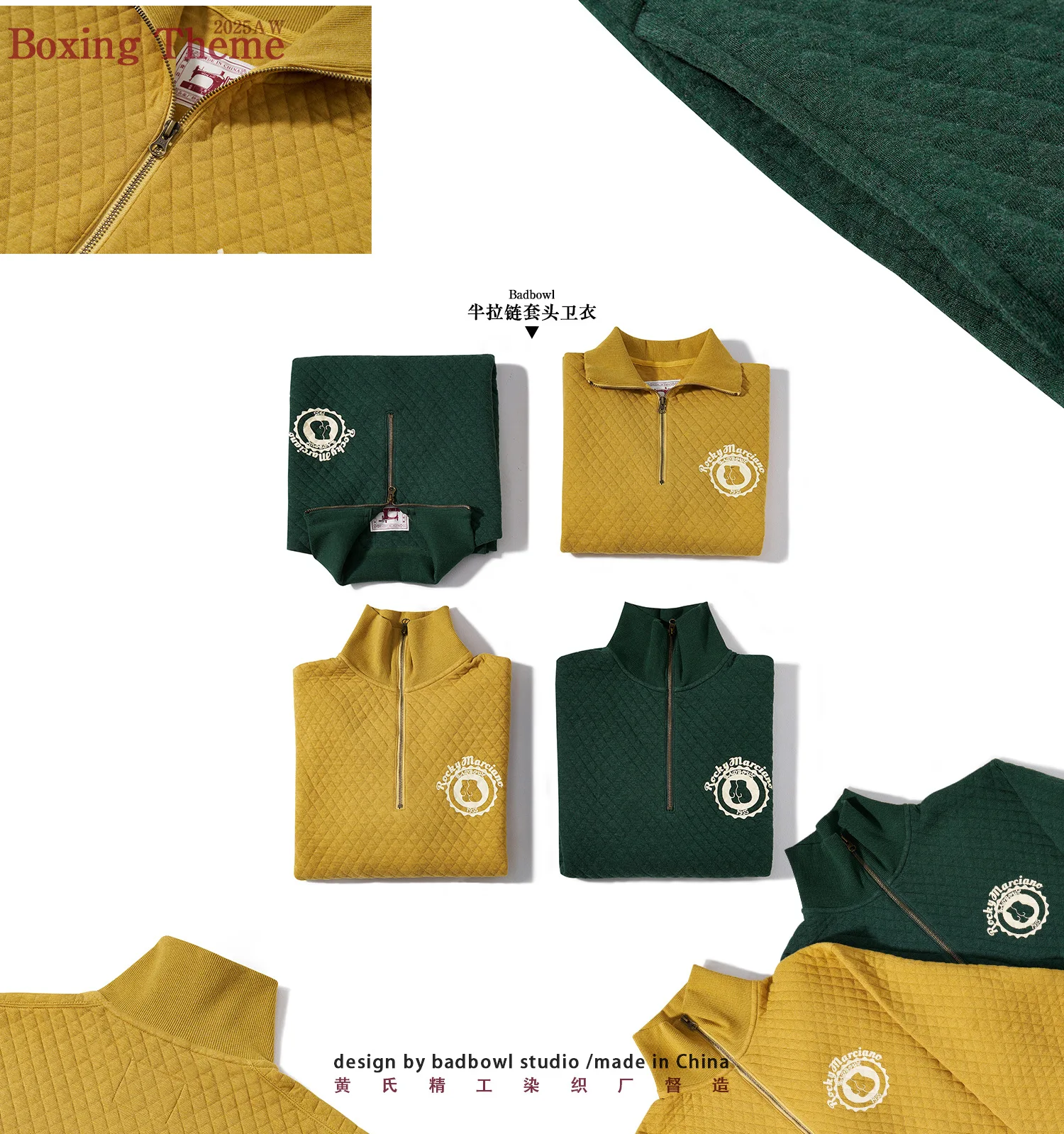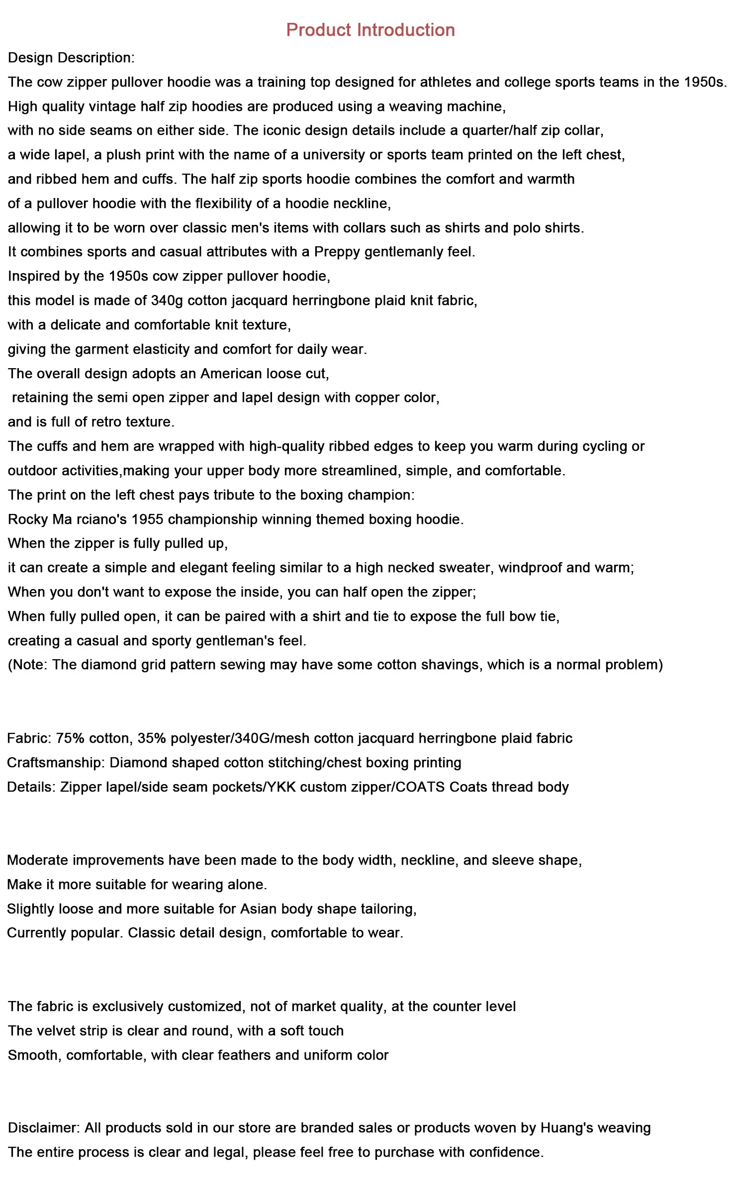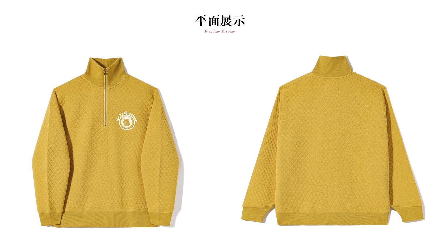 Half Zip Pullover Hoodie, Retro Sports Hoodie, Men's and Women's Couple Hoodie, Diamond Patterned Cotton, Winter Warmth